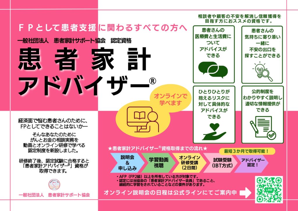 お知らせ2025年12月22日患者支援FPの認定資格「患者家計アドバイザー®」