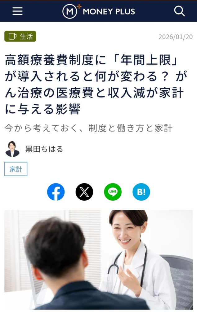 がん患者さんの経済的なご相談を受ける中で、今回の高額療養費制度の見直し案について、「月額負担が増えたら、治療を続けながら、家計は持ちこたえられるのか」といった不安の声が増えています。